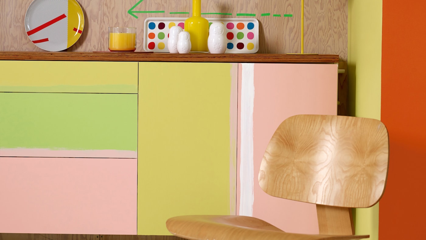 - Si estás pintando un tablero o una superficie horizontal, te sugerimos aplicar una o dos manos de barniz transparente para una mayor protección, una vez que la pintura se haya secado por completo. Los barnices satinados o mate, en especial, son buenos para ocultar las marcas. Dejá secar el mueble por al menos 12 horas, antes de volver a colocar los herrajes y acomodar el mueble en su lugar.